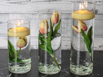 Three cylinder centerpieces using battery operated LED lights