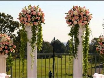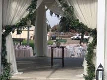 or a Grecian Colonnade with white columns surround your party. We can't forget that shabby chic wooden arch. Beach paradise is also represented with that bamboo arch with that palm tee back drop taking you to that destination wedding you wanted.