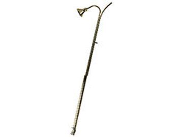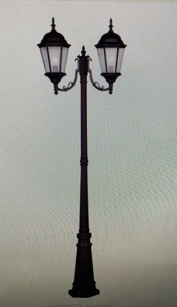 Light post has a round base and take regular plug extension cord.