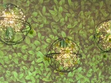 globe with greenery accents for the natural look when hanging in trees, party areas to give it a natural look.