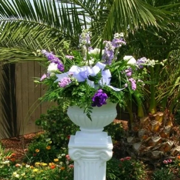 Simple classic white wrought iron arches or a Grecian Colonnade with white columns surround your party. We can't forget that shabby chic wooden arch. Beach paradise is also represented with that bamboo arch with that palm tee back drop taking you to that destination wedding you wanted.