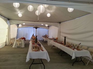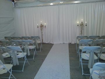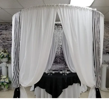 8 Ft. Tall pipe and drape gazebo with the option of sheer or standard drapes.